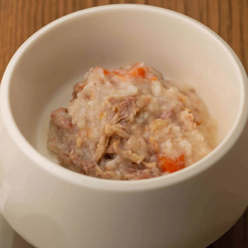 ●香り高い牛肉の香りとあきたこまちのもちもちした食感が合わさり、非常に食いつき良いので、食が細くて体力のない子や好き嫌いの多い子に是非お試しください。