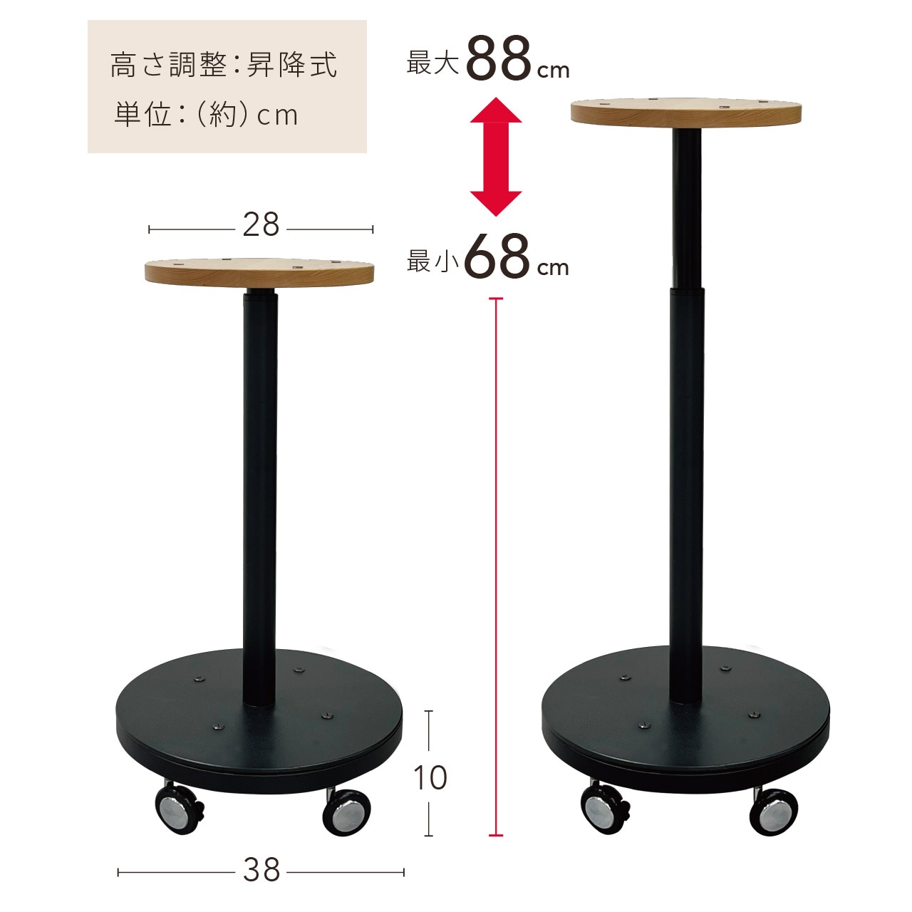 キャスターつき:高さ最大88cm 〜 最小68cm