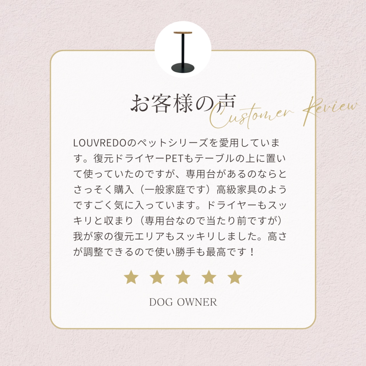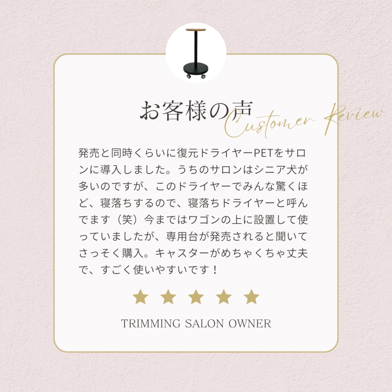 復元ドライヤーPETご愛用のトリマーさんらのご要望で製品化。天然木を使用したシンプルデザインは省スペースで場所を選ばず快適にご使用いただけます。