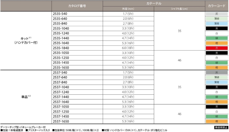 ●5〜8Frサイズには1cm毎の深度目盛があります。