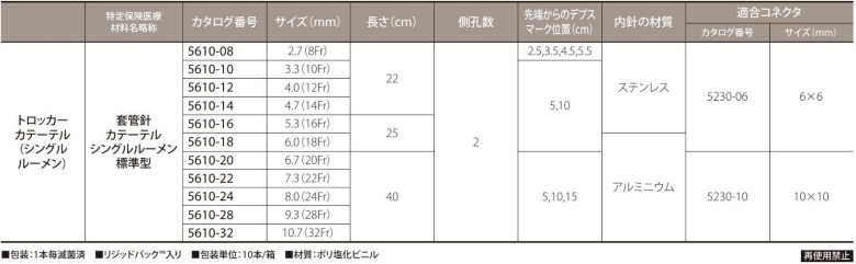 ●特定保険医療材料名:套管針カテーテル シングルルーメン 標準型