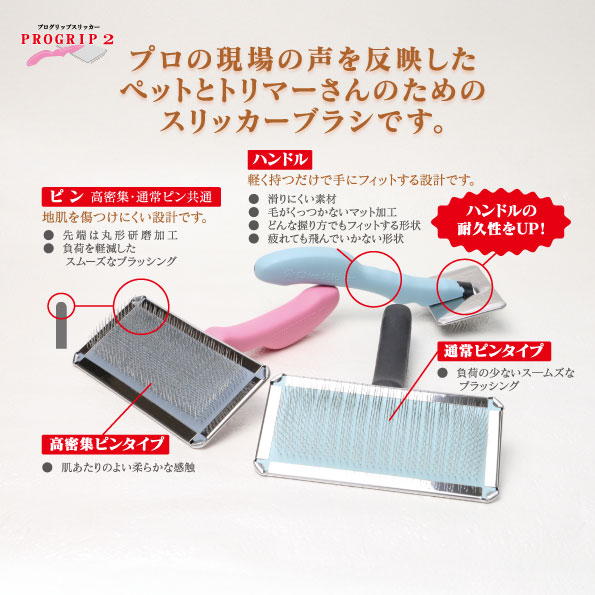 プログリップ2 スリッカーブラシ 密集ピンタイプ