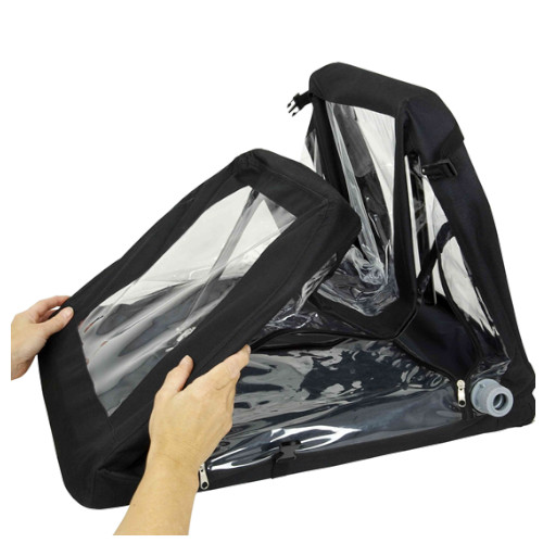 酸素テント、マット、T-Pieceアダプタ(赤キャップ付き)、パイプフレーム、酸素注入用アダプタ(透明)、酸素チューブ(2.1ⅿ)、麻酔チャンバー用接続アダプタ、キャリングバック