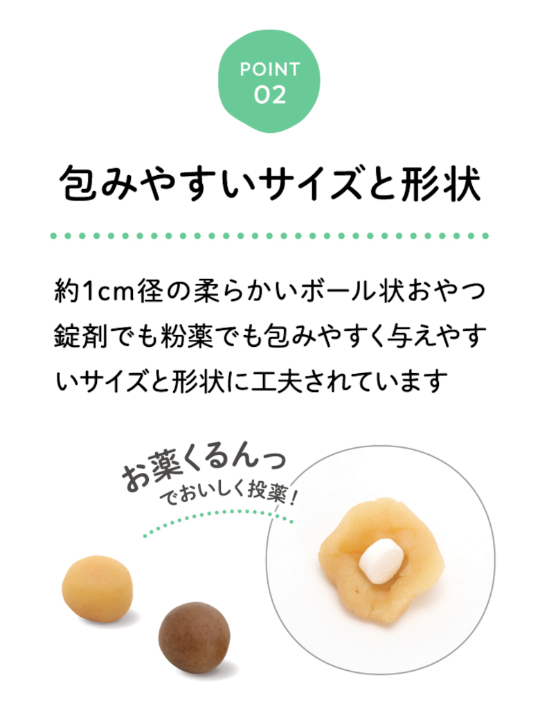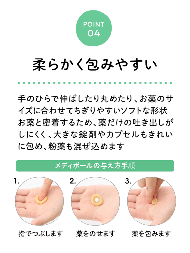 メディボールは約1cm径の柔らかいボール状おやつです。
