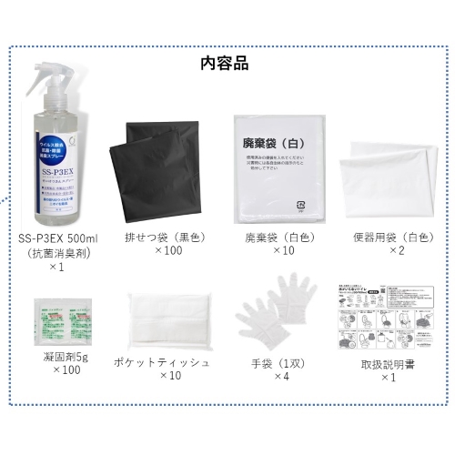 ●トイレ処理に必要な物品がセットされており、迅速・簡便に処理することができます。