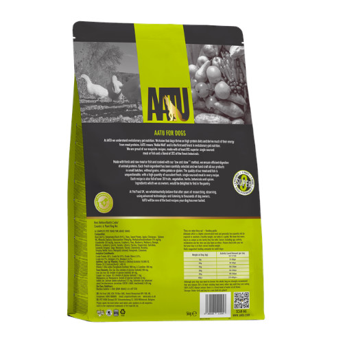 ●AATUシリーズは上質な肉食ダイエットを好む愛犬のためにドライフード:肉(魚)80%と20%の野菜、フルーツ、ハーブ、植物由来原料をウェットフード:肉(魚)90%と10%の野菜、フルーツ、ハーブ、植物由来原料をふんだんに使用した100%ナチュラルなグレインフリー(穀物不使用)ドッグフードです。