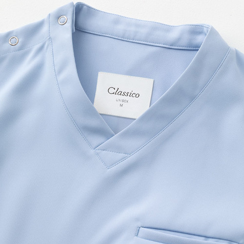 ●動きやすくトレンド感のあるボクシーなシルエットのユニセックス(男女兼用)スクラブ。