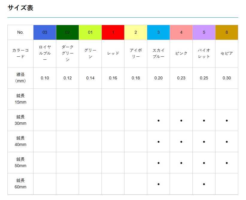 取扱の無い線径・鍼長のご希望がございましたらお気軽にお問合せください。