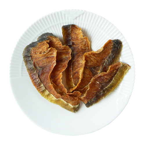 北海道産オホーツクサーモンをスライスしそのまま乾燥させた旨味たっぷりのおやつです。