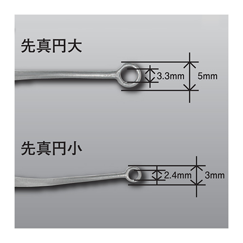・フック先端が鈍であるために血管損傷を与える危険性が低いのでPDA血管確保などに比較的安全に使用できる。