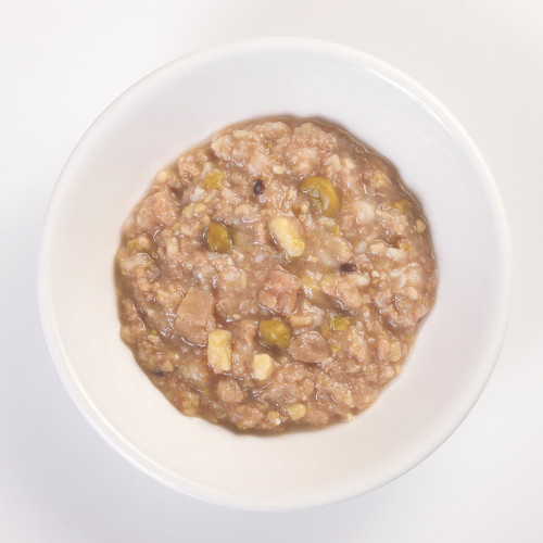 ●真鯛とわかめ:真鯛、にんじん、だいこん、あわ、きび、玄米こうじ(フェルラ酸含有)、ほたてだし、DHA含有精製魚油粉末、米油、MCT(中鎖脂肪酸油)、寒天、こんにゃく粉、わかめ、カツオブシエキス