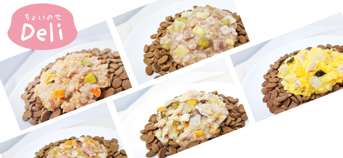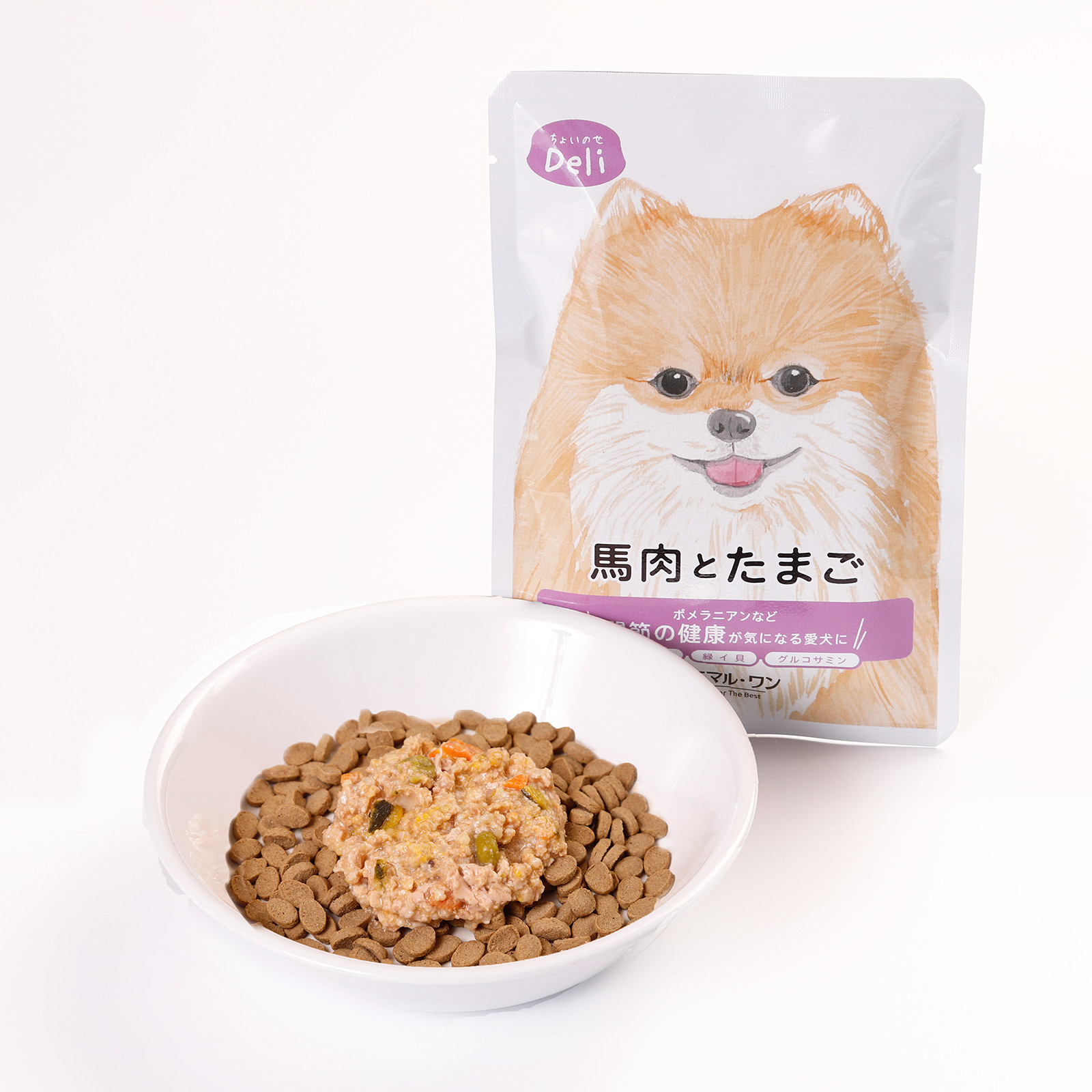 ●馬肉とたまご:全卵、馬肉、にんじん、グリーンピース、かぼちゃ、ブロッコリー、あわ、きび、豚軟骨抽出物(コンドロイチン硫酸含有)、緑イ貝エキス、グルコサミン