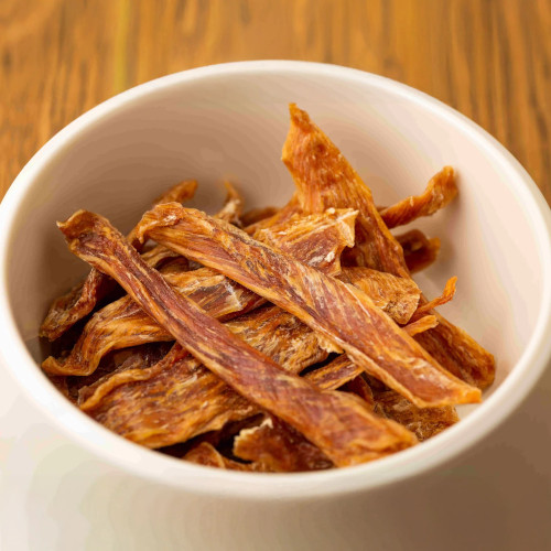 ●手で裂けるので老犬にも食べやすい比内地鶏のむね肉。