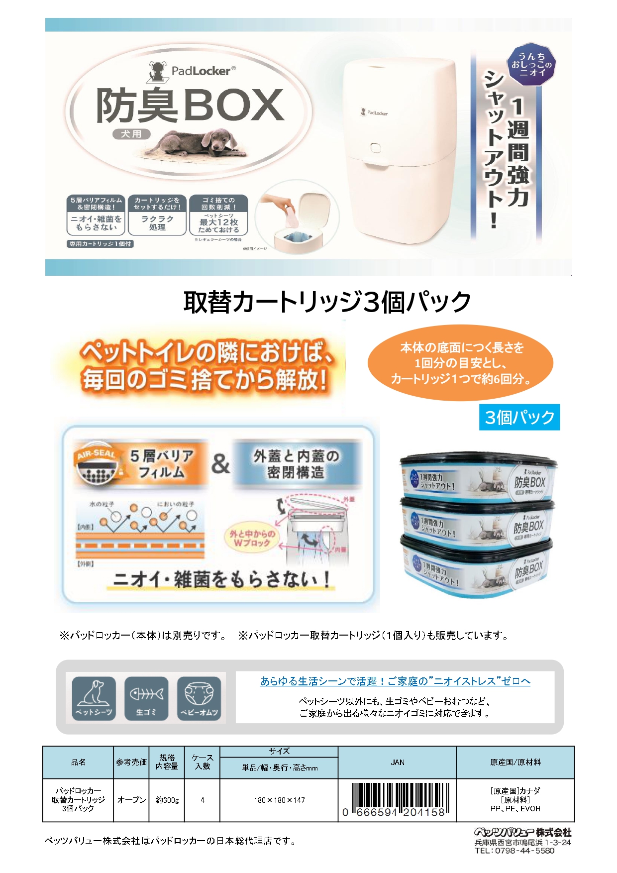 ●犬用防臭ボックスの専用カートリッジ3個パック。