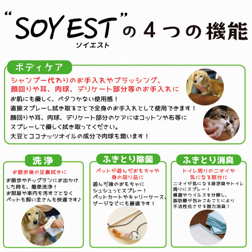 ●涙やけやデリケート部分、お散歩帰りの足裏拭き等のお手入れにお使いいただけ、天然成分の大豆とココナッツオイルの保湿効果で、お肌や肉球もしっとり潤います。