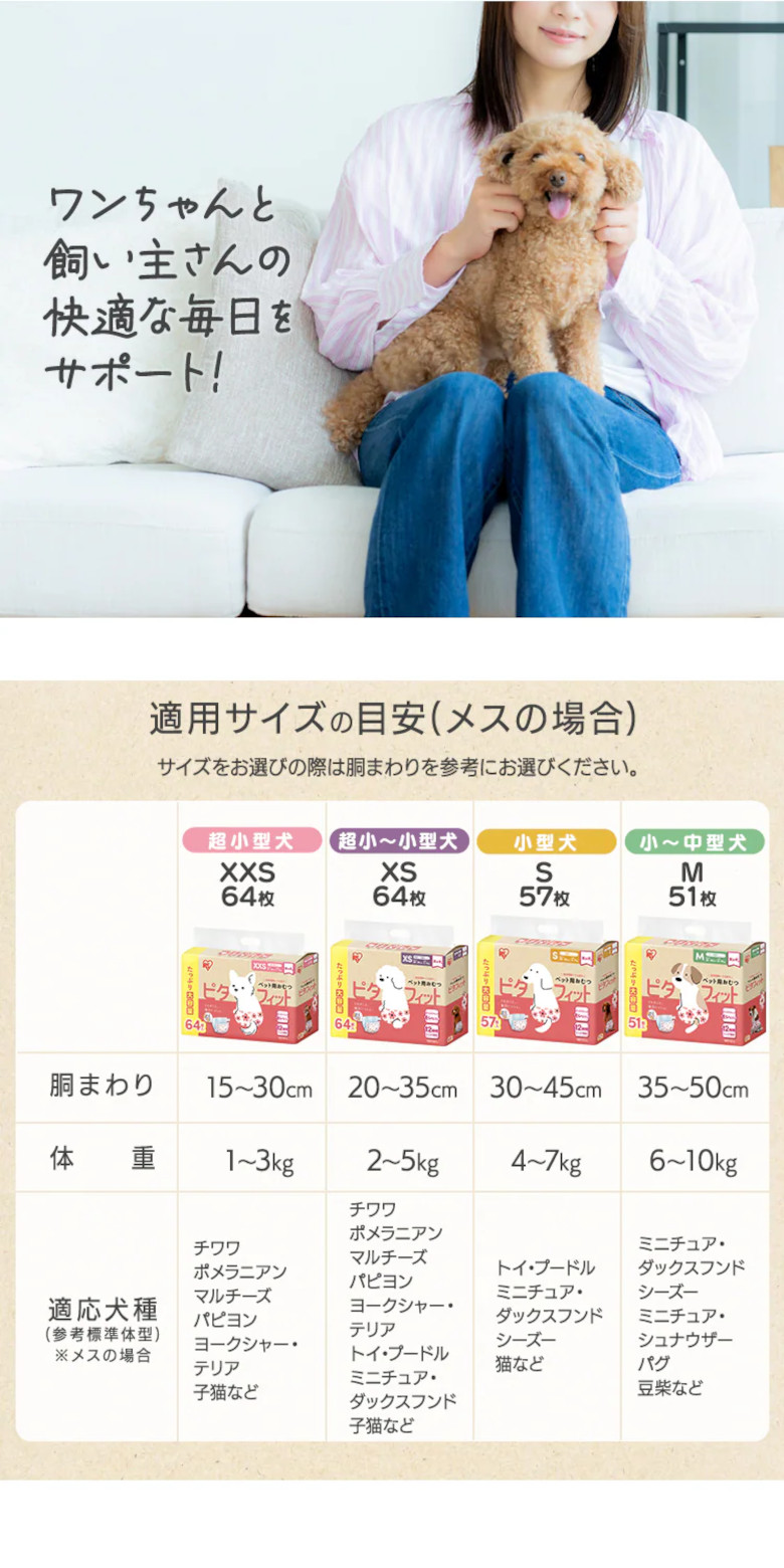たっぷり吸収し、長時間動いても快適な女の子用のペット用おむつです