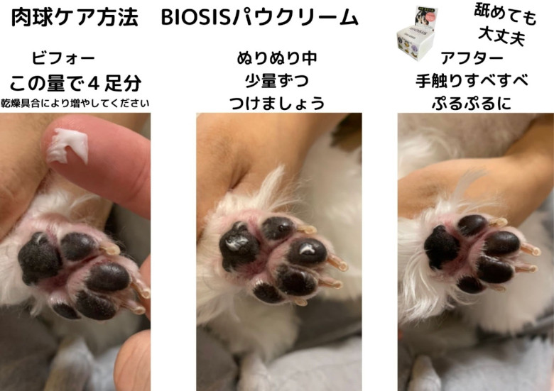 ●熱くなった路上(アスファルト)での散歩により、ダメージを受けた肉球をしっかりケア
