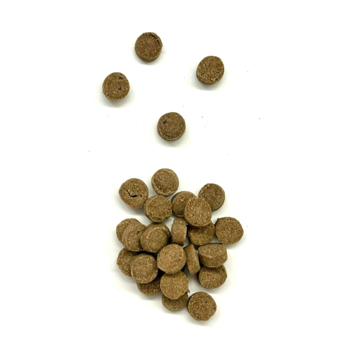 粗蛋白:22.0%以上、粗脂肪:9.0%以上、粗繊維:0.5%以下、水分:5.8%以下、粗灰分:3.3%以下