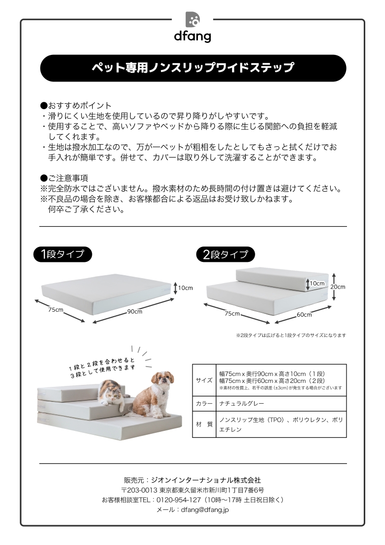 ワイドステップ2段を重ねて3段のステップにできます。軽くて引っかきに強い。犬猫の足が沈みにくい硬さで上り下りがスムーズにできます。