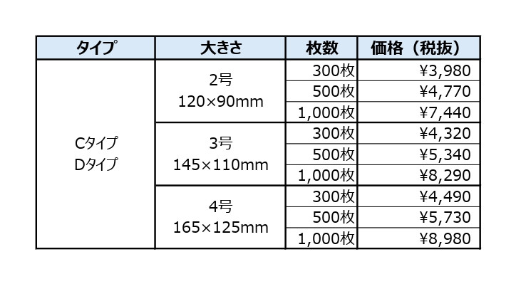 ※新規オーダー、再オーダーでのタイプ変更、原稿内容変更は