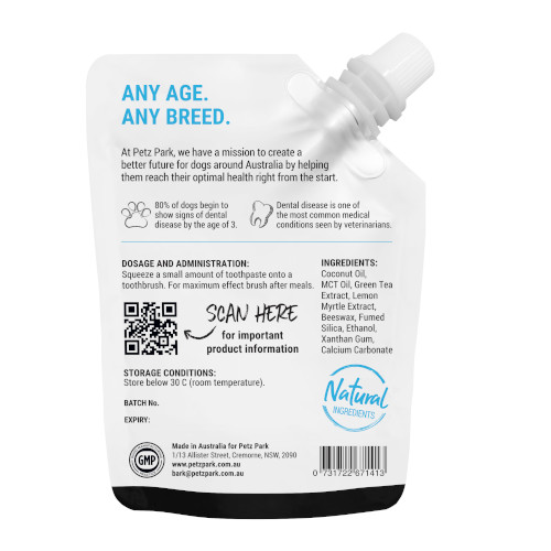 ●ペッツパークの犬用歯磨き粉は、すすぐ必要がなく、犬の歯を清潔で健康に保つように設計されています。