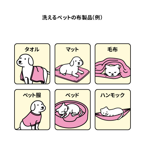 ペットの布製品を洗うための洗たく用コンバクト洗剤。
