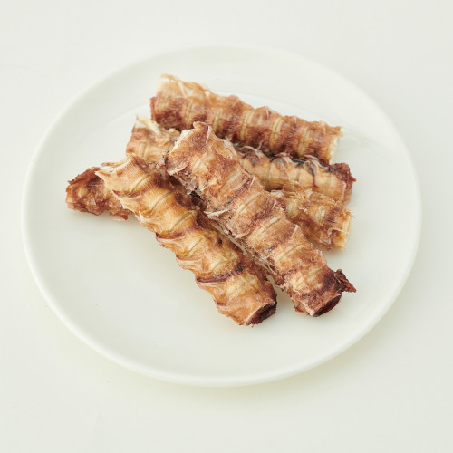鮭の中骨から小骨を取り除き、乾燥させた噛み応えと栄養豊富な健康おやつ。