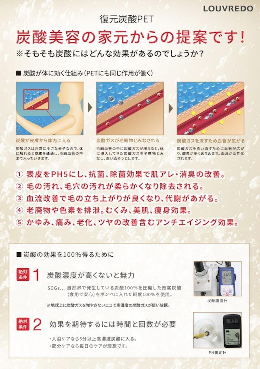 ●復元炭酸PETは、ペットの健康と快適さを考えた新しいケアアイテムです。ペットの被毛に炭酸の力を届け、清潔でふんわりとした仕上がりをサポートします!