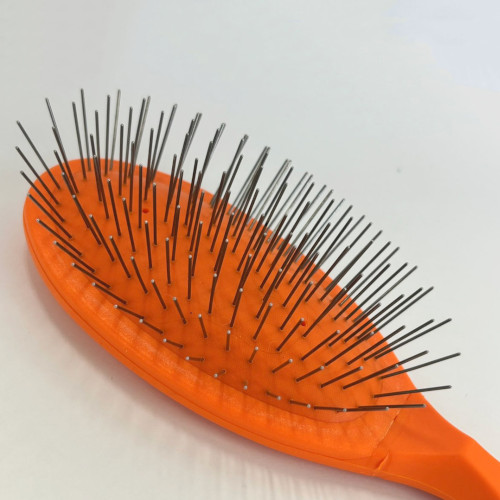 綺麗な色使いで滑りにくいコーティングハンドルをした軽量ピンブラシ。
