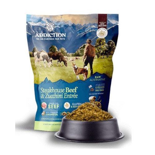 <原材料>ビーフ生肉、ポテト、ニンジン、ココナッツオイル、フラックスシード、タピオカ、パパイヤ、ズッキーニ、クランベリー、ブルーベリー、マンゴー、アップル、バジル、ローズマリー、タイム、ペパーミント、ほうれん草、リン酸二カルシウム、天然フレーバー、醸造用酵母、シーソルト、炭酸カルシウム、硫酸マグネシウム、塩化コリン、塩化カリウム、ビタミンA、ビタミンD3、ビタミンE、硝酸チアミン、リボフラビン、パントテン酸カルシウム、ナイアシン、塩酸ピリドキシン、葉酸、ビタミンB12、硫酸第一鉄、硫酸銅、硫酸マンガン、硫酸亜鉛、ヨウ素酸カルシウム、亜セレン酸ナトリウム、硫酸コバルト、タウリン、緑茶エキス、ローズマリーエキス、スペアミントエキス、酸化防止剤(ミックストコフェロール)