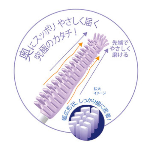 ●幅広形状、斜め配列の毛が歯に密着し歯垢をからめとる。
