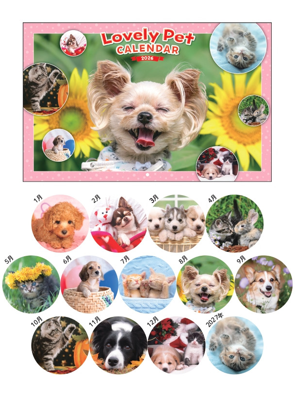 かわいいわんちゃん・ねこちゃんのラブリーペットカレンダーです。