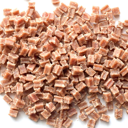 ●たんぱく質34.0%以上、脂質8.0%以上、粗繊維0.5%以下、灰分4.0%以下、水分30.0%以下、エネルギー304kcal/100g