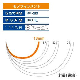 注)・C-UPSはカットグット糸と互換性のある規格です。同じUSP・JIS番号より太さが1ランク上がります。
