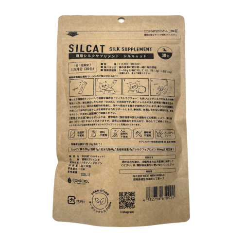 特許製法のシルク成分配合。シルクの力で、内側から澄みわたる毎日を。愛猫の腎臓ケアと健やかな巡りをサポートします。
