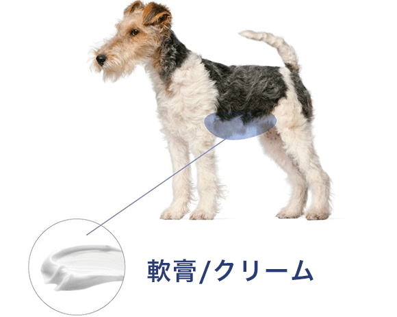 保湿剤の性質によって、同じ成分でも浸透性・使用感が異なります。軟膏、ローション、ジェル、フォーム、液剤などの剤形を、有毛/無毛、塗布する部位、飼い主の意向などにより選択します。